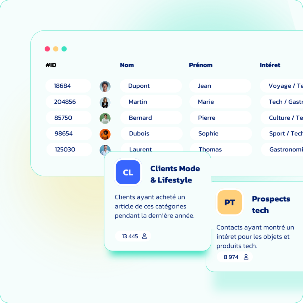 À l’aide des connecteurs API, des flux XML, des tableurs ou des formulaires, centralisez toutes les données de contact en un seul endroit.